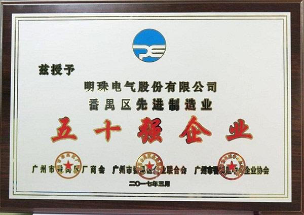 我公司被評為“番禺區(qū)先進制造業(yè)50 強企業(yè)”彰顯了我公司雄厚的實力和社會各界的認可,進一步提升我公司的名譽及品牌價值,為公司的可持續(xù)發(fā)展提供保障。大浪淘沙,不進則退,在世界經(jīng)濟全球化進程大大加速的今天,機遇與挑戰(zhàn)并存。明珠電氣將秉持服務(wù)客戶,造福社會的信念,應(yīng)對國際化的競爭法則與商業(yè)標準,開拓思路,與時俱進,創(chuàng)建明珠一流的品牌,讓明珠散發(fā)出絢麗的光彩。